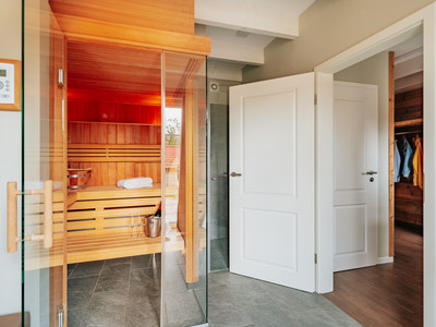On the ground floor there is a fully equipped kitchen and a cosy living area with its own fireplace and large dining area. In the cold season you can warm up in your Finnish sauna. Firewood, bed linen, towels, sauna towels and tea towels are also provided and included in the price, as is the final cleaning.