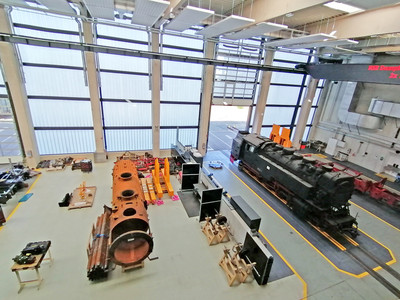 The first floor provides comprehensive information about the history of the Harz narrow-gauge railway (HSB), important milestones and extensions to the route network. The visitor gallery, a highlight of the exhibition, offers an impressive view of the workshop and the work carried out there on the steam locomotives. Digital information systems and haptic exhibits make the exhibition an interactive experience for young and old alike.