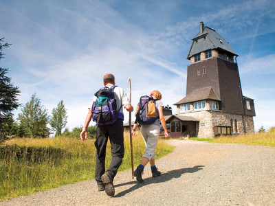 In Lerbach, now a district of Osterode, begins the 2nd stage of the BaudenSteig. Due to numerous mining sites, Lerbach was often referred to as a "mountain village" in the past, although it lies in the valley. The path leads to the idyllically located Sösestausee. Today, the Sösestausee supplies drinking water to the region around Göttingen and the area around Hanover. Shortly after the reservoir, the path rises. On the heights, on natural paths, it is excellent for hiking. Here in the "Auf dem Acker" area, already in the Harz National Park, there is a beautiful high moor landscape. The ridge consists of Acker-Bruchberg quartzite. This is a very hard rock, so the "Acker" resisted weathering far better than the surroundings and rises to over 800 meters above sea level, guaranteeing wonderful views. The Hanskühnenburg rock announces the nearby mountain hut. From the tower, you can enjoy a panoramic view in good weather. Time for a pleasurable break. By the way, one of the most prominent hikers at the Hanskühnenburg rock was Johann Wolfgang von Goethe, although back then there was no rustic mountain hut yet. The goal is near: from here the BaudenSteig leads only downhill to Sieber.